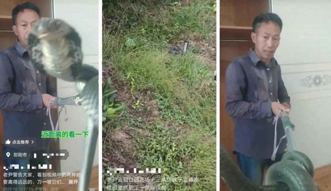 “我用了草药,我的手都已经变形了,明天你们可以来看看。我也知道注射血清是最好的,其他事情我们见面再说。”尹某某还表示,自己直播抓蛇并不是为了炒作,很多网友评论称,他是为了炒作流量的,但他对此表示否认。记者在其账号主页搜索发现,其曾发布多条捕蛇相关视频,均为眼镜蛇、银环蛇等剧毒种类。更令人百思不解的是,仅仅在19天前(10月9日)他发布的一条视频中,就曾科普过银环蛇毒性。视频文案为“银环蛇,亚洲毒王,万一被它咬到,第一时间打120,两个小时之内一定一定一定要打血清,记住一定要在两小时之内打血清!”说明其对银环蛇毒性的了解远比一般民众深刻。